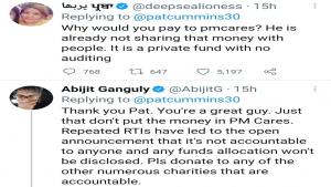 पण त्याचे हे दातृत्व भारतातील मोदी विरोधकांना मात्र सहन झालेले नाही. “कमिन्स तू करतो आहेस ते चांगले आहे पण पीएम केअर्स फंडला मदत देऊ नकोस.”, “पीएम केअर्सला दान देण्यापेक्षा दान न देणे केव्हाही उत्तम”, “पीएम केअर्सला मदतच का द्यावी?” अशी अनेक मुक्ताफळे या मंडळींनी उधळली आहेत. कोरोनासारख्या राष्ट्रीय आपत्तीच्या काळात एकत्र येऊन काम करायचे सोडून आपला राजकीय विरोध महत्वाचा वाटत असल्याचे या मंडळींनी दाखवून दिले.
