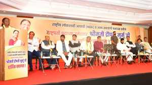 राष्ट्रपतीपदाच्या निवडणुकीत राष्ट्रीय लोकशाही आघाडीच्या (एनडीए) उमेदवार द्रौपदी मुर्मू यांना महाराष्ट्रातून एनडीएच्या मतांपेक्षाही अधिक मते मिळतील. तसेच मुर्मू यांना विक्रमी मताधिक्य मिळेल, असा विश्वास गुरुवार,१४ जुलै मुंबईत मुख्यमंत्री एकनाथ शिंदे, उपमुख्यमंत्री देवेंद्र फडणवीस व केंद्रीय मंत्री नितीन गडकरी यांनी व्यक्त केला.