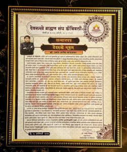 देवरुखे ब्राह्मण संघाचा हिरक महोत्सव नुकताच पार पडला. या कार्यक्रमात कारुळकर प्रतिष्ठानचे अध्यक्ष आणि उद्योगपती प्रशांत कारुळकर यांना “देवरुखे भूषण पुरस्कारा”ने सन्मानित करण्यात आले. विविध क्षेत्रांमधील उल्लेखनीय कामगिरीसाठी प्रशांत कारुळकर यांना गौरवण्यात आले. रविवार, १८ जानेवारी २०२६ रोजी “देवरुखे ब्राह्मण संघ, डोंबिवली” यांचा हिरक महोत्सव सोहळा संपन्न झाला. “देवरुखे भूषण पुरस्कारा”ने सन्मानित केल्यानंतर प्रशांत कारुळकर यांनी त्यांना आनंद झाल्याचे म्हणत सर्वांचे आभार मानले.